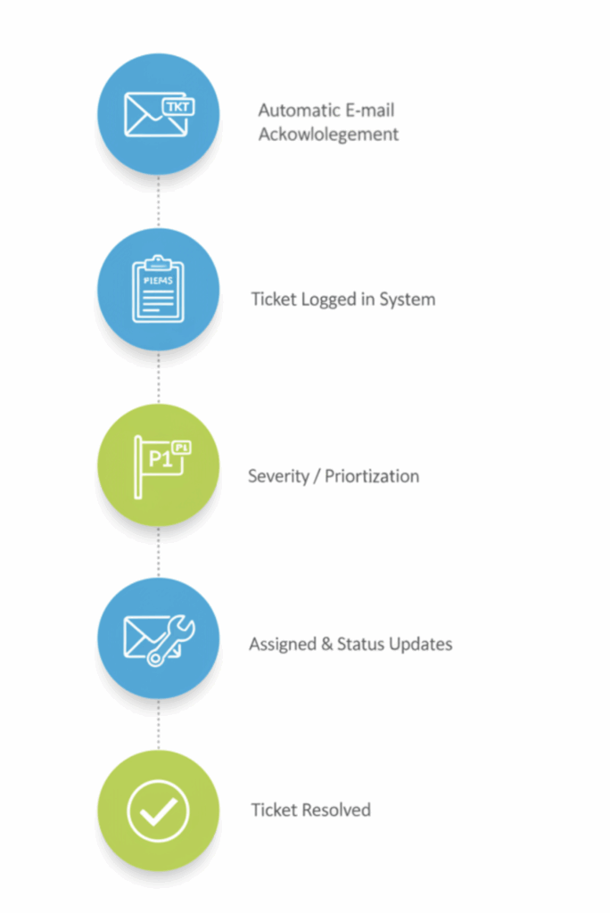 - To keep you apprised of your ticket status, the response team provides on-going updates to you via email, and will notify you when the problem is resolved.